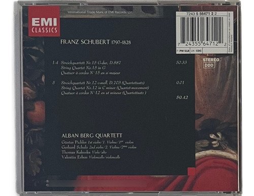 CD EMI Classics / Schubert – Streichquartette 12 (quartettsalz) 15 (g-dur) / Alban Berg Quartett.A Oto Livraria é uma extensão da Oto Reifschneider Galeria de Arte, que funciona em Brasília desde 2015. Com foco em artes e assuntos correlatos (como design, ilustração, fotografia e histórias em quadrinhos), o acervo também conta com LPs, CDs e DVDs. A Oto Livraria funciona na mesma quadra da galeria de arte. As compras podem ser retiradas pessoalmente em Brasília ou enviadas pelos Correios (solicite valores de envio).