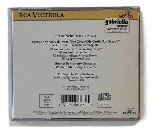 CD RCA Victrola / Schubert Symphony No. 9 – “The Great/Die GroBe/La Grande” / Boston Symphony Orchestra – William Steinberg.A Oto Livraria É Uma Extensão Da Oto Reifschneider Galeria De Arte, Que Funciona Em Brasília Desde 2015. Com Foco Em Artes E Assuntos Correlatos (como Design, Ilustração, Fotografia E Histórias Em Quadrinhos), O Acervo Também Conta Com Lps, Cds E Dvds. a Oto Livraria Funciona Na Mesma Quadra Da Galeria De Arte. as Compras Podem Ser Retiradas Pessoalmente Em Brasília Ou Enviadas Pelos Correios (solicite Valores De Envio).