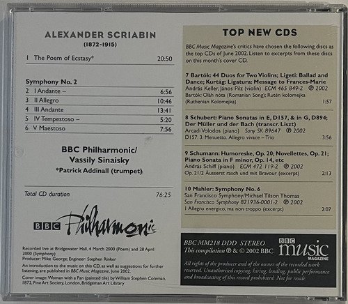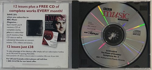 CD BBC Music / Scriabin The Poem of Ecstasy Symphony No. 2 A Oto Livraria é uma extensão da Oto Reifschneider Galeria de Arte, que funciona em Brasília desde 2015. Com foco em artes e assuntos correlatos (como design, ilustração, fotografia e histórias em quadrinhos), o acervo também conta com LPs, CDs e DVDs. A Oto Livraria funciona na mesma quadra da galeria de arte. As compras podem ser retiradas pessoalmente em Brasília ou enviadas pelos Correios (solicite valores de envio).