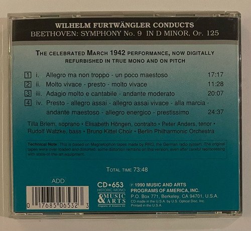 CD Wilhelm Furtwängler: Beethoven – Symphony No. 9 Op. 125
