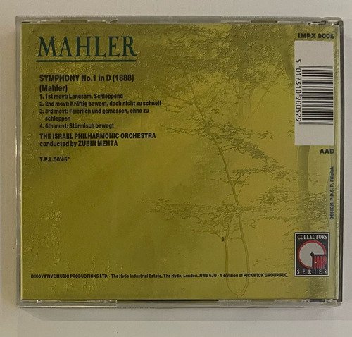 The Israel Philharmonic Orchestra conducted by Zubin Mehta / Mahler: Symphony No. 1 in D (1888) / Innovative Music Productions / Edição importada Inglaterra – 1976 / CD tocando normalmente. A Oto Livraria é uma extensão da Oto Reifschneider Galeria de Arte, que funciona em Brasília desde 2015. Com foco em artes e assuntos correlatos (como design, ilustração, fotografia e histórias em quadrinhos), o acervo também conta com LPs, CDs e DVDs. A Oto Livraria funciona na mesma quadra da galeria de arte. As compras podem ser retiradas pessoalmente em Brasília ou enviadas pelos Correios (solicite valores de envio).