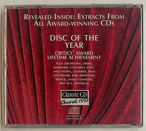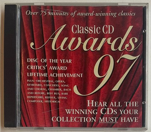 The 1997 Classic CD Awards – Bonus Disc – Disc of the year critics’ award lifetime achievement / Over 75 minutes of award-wiinniing classics / Disctronics S. / Edição importada Inglaterra / CD tocando normalmente. A Oto Livraria é uma extensão da Oto Reifschneider Galeria de Arte, que funciona em Brasília desde 2015. Com foco em artes e assuntos correlatos (como design, ilustração, fotografia e histórias em quadrinhos), o acervo também conta com LPs, CDs e DVDs. A Oto Livraria funciona na mesma quadra da galeria de arte. As compras podem ser retiradas pessoalmente em Brasília ou enviadas pelos Correios (solicite valores de envio).