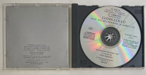 Gleen Gould / From the Broadcast of 22 November 1967 Bach / From the Broadcast os 17 January 1956 Bach and Gibbons / Music and Arts Programs of America / Edição importada Austria – 1987 / CD tocando normalmente. A Oto Livraria é uma extensão da Oto Reifschneider Galeria de Arte, que funciona em Brasília desde 2015. Com foco em artes e assuntos correlatos (como design, ilustração, fotografia e histórias em quadrinhos), o acervo também conta com LPs, CDs e DVDs. A Oto Livraria funciona na mesma quadra da galeria de arte. As compras podem ser retiradas pessoalmente em Brasília ou enviadas pelos Correios (solicite valores de envio).