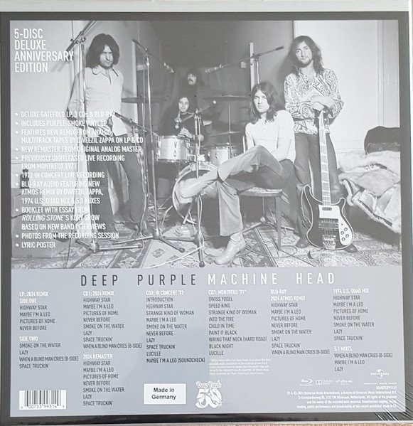 Lançado em 1972, Machine Head é o sexto álbum de estúdio do Deep Purple e é amplamente considerado uma das obras definitivas do hard rock. Gravado na Suíça, o disco apresenta uma formação clássica da banda, conhecida como Mark II, composta por Ian Gillan, Ritchie Blackmore, Roger Glover, Jon Lord e Ian Paice. O trabalho é famoso por conter sucessos atemporais como Highway Star e Smoke on the Water, esta última imortalizada por um dos riffs de guitarra mais reconhecidos da história da música. Com uma sonoridade potente que mistura elementos de blues, rock e música erudita, Machine Head consolidou o grupo como um dos pilares do rock pesado mundial, mantendo sua relevância e influência sobre gerações de músicos até os dias atuais.