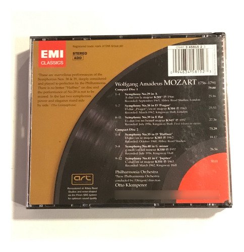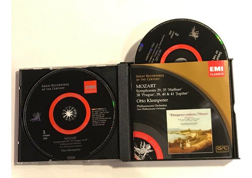 Otto Klemperer – Mozart – Symphonies 29, 35 “Haffner”, 38 “Prague”, 39, 40 & 41 “Jupiter” / CD Duplo / 2006, EMI / Edição importada / Coleção Great Recordings of the Century, EMI Classics / CD tocando normalmente / Música clássica / Música de concerto / Música erudita.Livreto inglês, alemão, francês