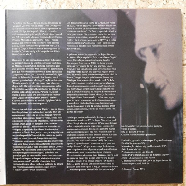Sugar Doors – A 4-Track Experience é um registro essencial na trajetória de Jupiter Apple, lançado originalmente em 1995. Este EP de quatro faixas sintetiza a essência psicodélica e o experimentalismo lo-fi que definiram o início da carreira solo de Flávio Basso. Gravado de forma independente e com uma estética crua, o material apresenta a habilidade única do artista em fundir melodias pop setentistas com uma atmosfera onírica e lisérgica. O disco é considerado um marco do rock alternativo gaúcho, destacando-se pela crueza das composições e pela identidade sonora excêntrica que se tornaria a marca registrada do músico ao longo dos anos.